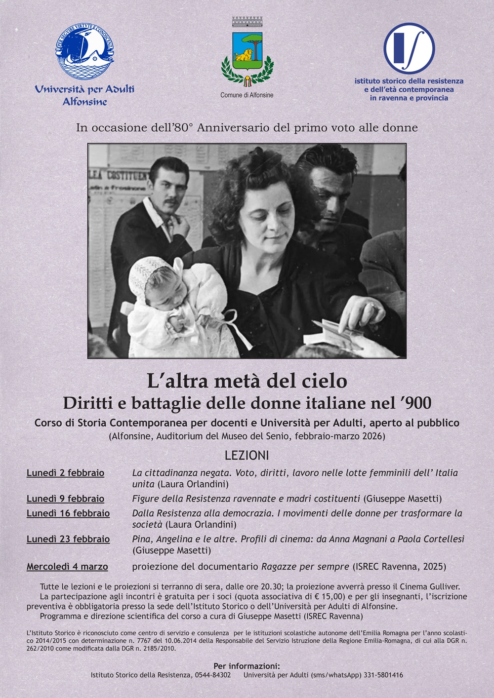 Lunedì 9 febbraio: Figure della resistenza ravennate e madri costituenti - Docente: Giuseppe Masetti